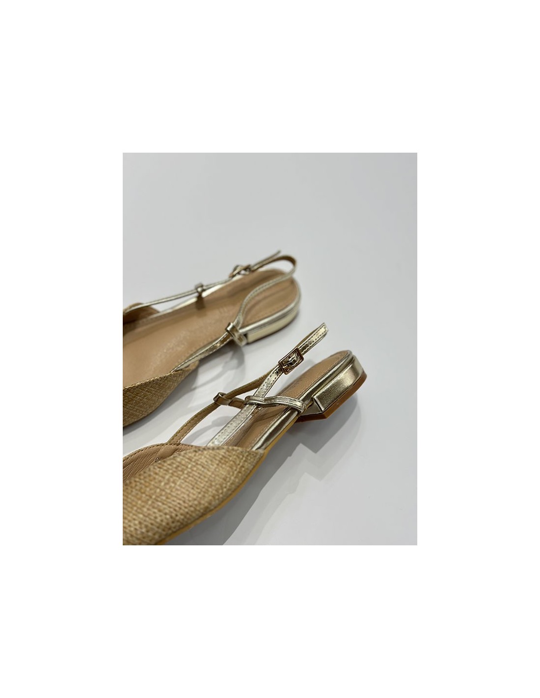 Tacón y cinta dorada.