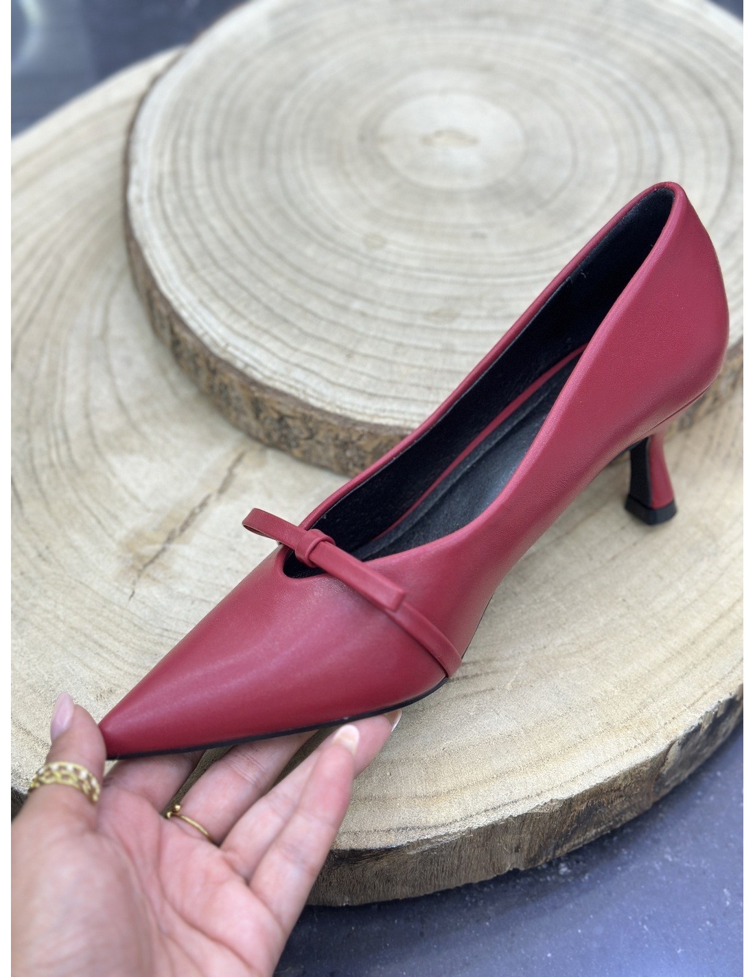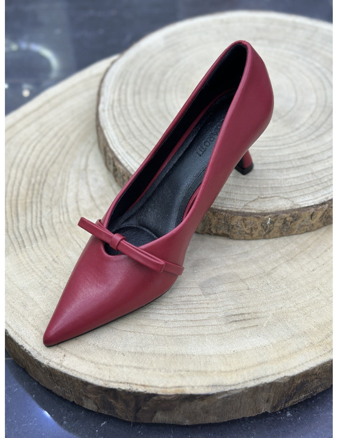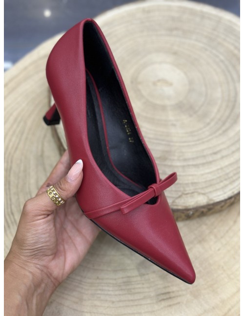 Tacón de salón en color rojo con detalle de lazo